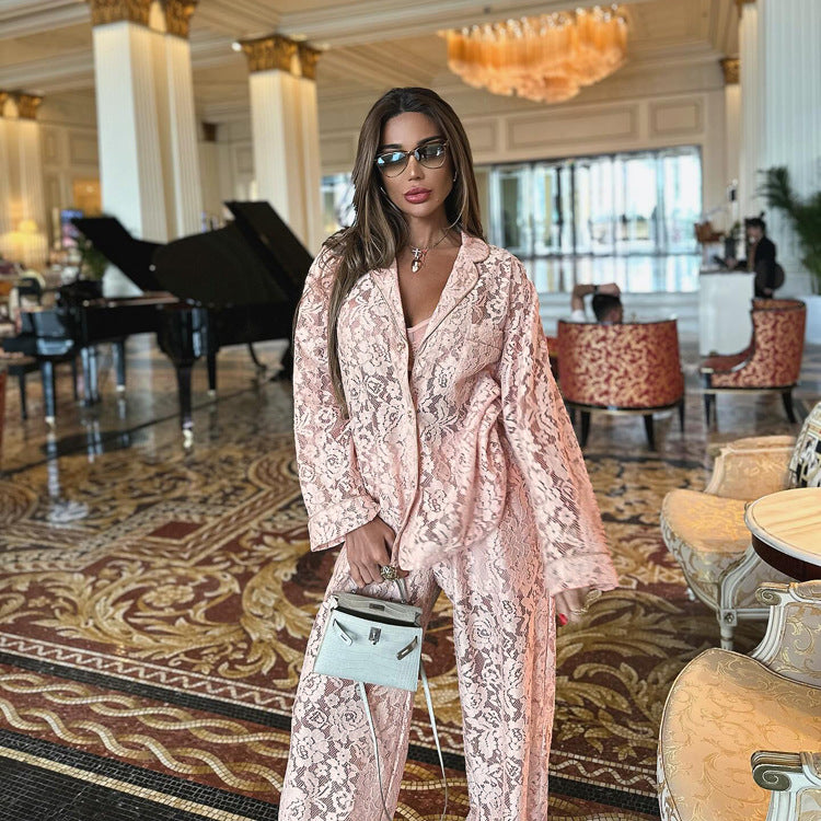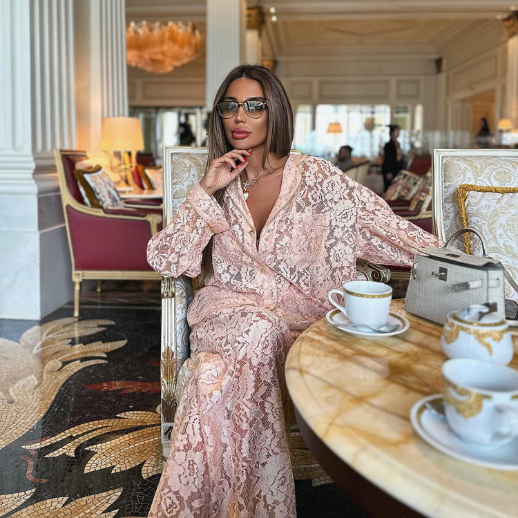 Bu özel dantel takım, sofistike detayları ve şık duruşuyla tarzınızı bir üst seviyeye taşır. Transparan dantel kumaşıyla zarif ve iddialı bir görünüm sağlarken, rahat kesimi sayesinde konforlu bir kullanım sunar. Hem günlük kombinlerde hem de özel anlarda fark yaratmak isteyenler için mükemmel bir seçimdir.