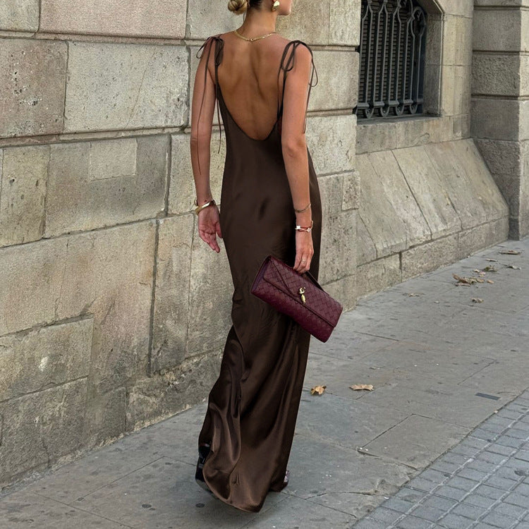 Valverie™ | Giselle Saten Askılı Maxi Elbise