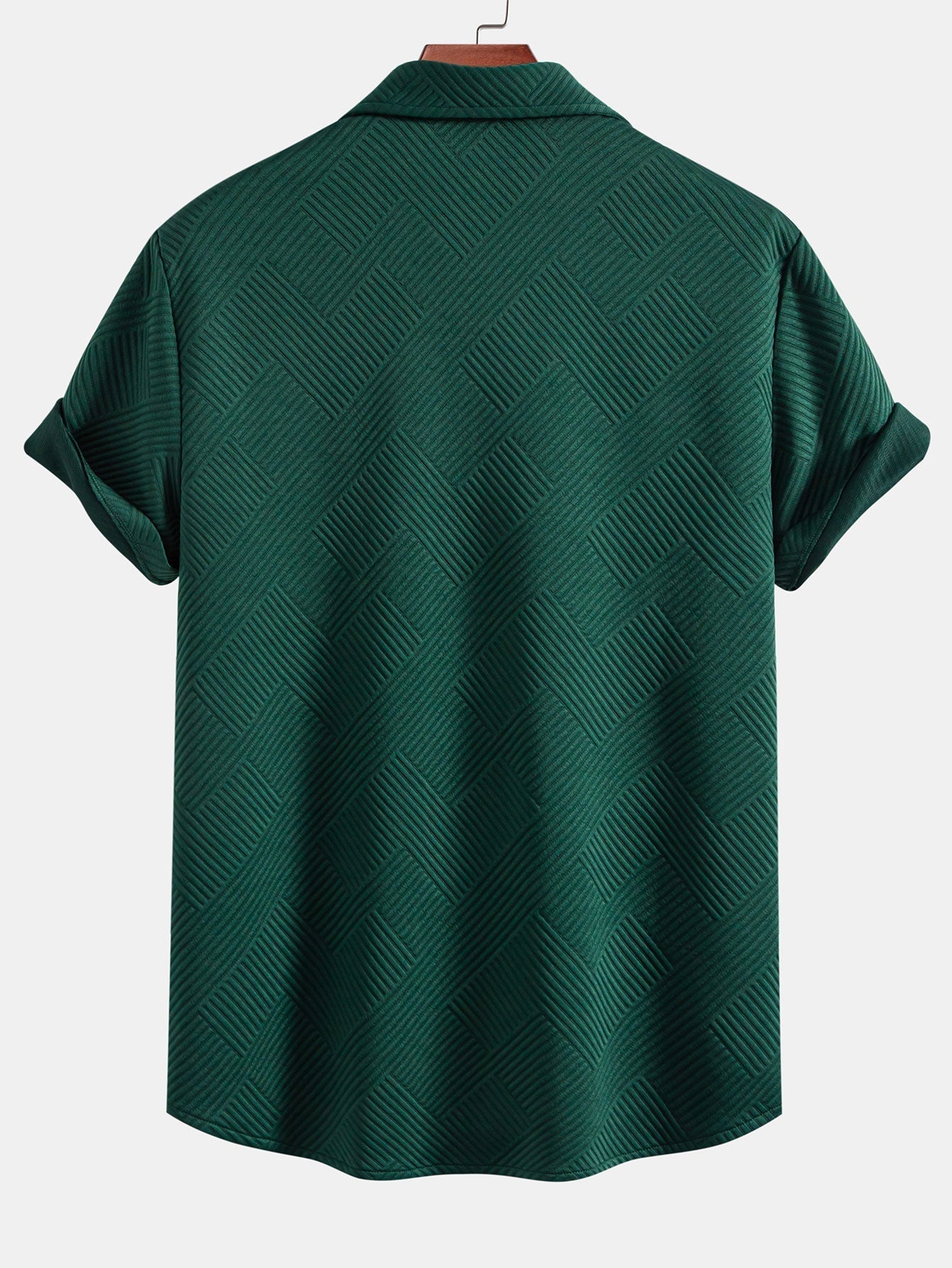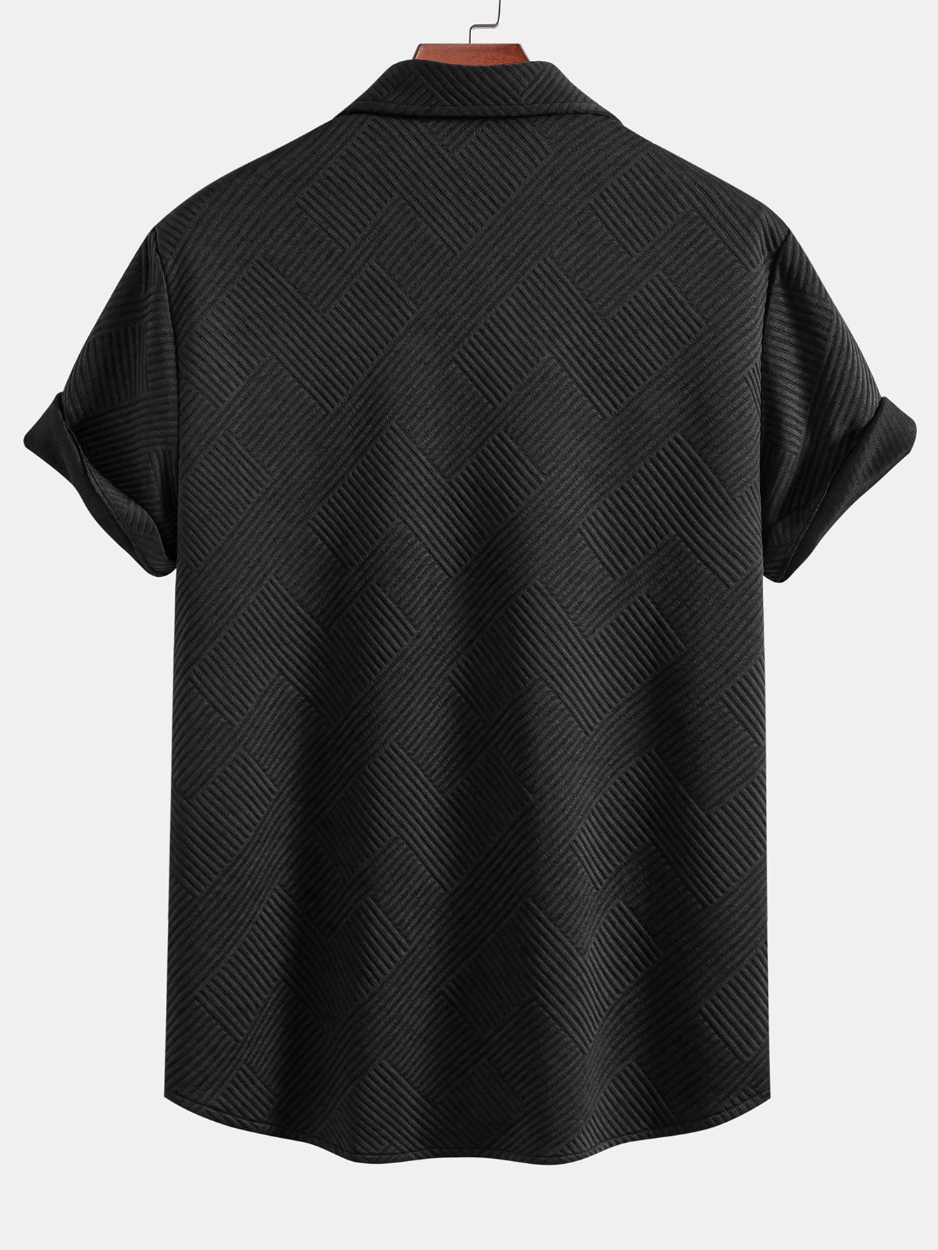 Bu gömlek takımı, modaya uygun bir his katan benzersiz geometrik dokusu ve pratik ve güzel bir göğüs cebi ile sade ve zariftir. Aynı renkte bağcıklı şortlarla eşleştirildiğinde rahat ve gevşektir. Kumaş cilt dostudur, gündelik geziler veya yazın günlük giyim için uygundur ve gündelik cazibesini kolayca gösterir.